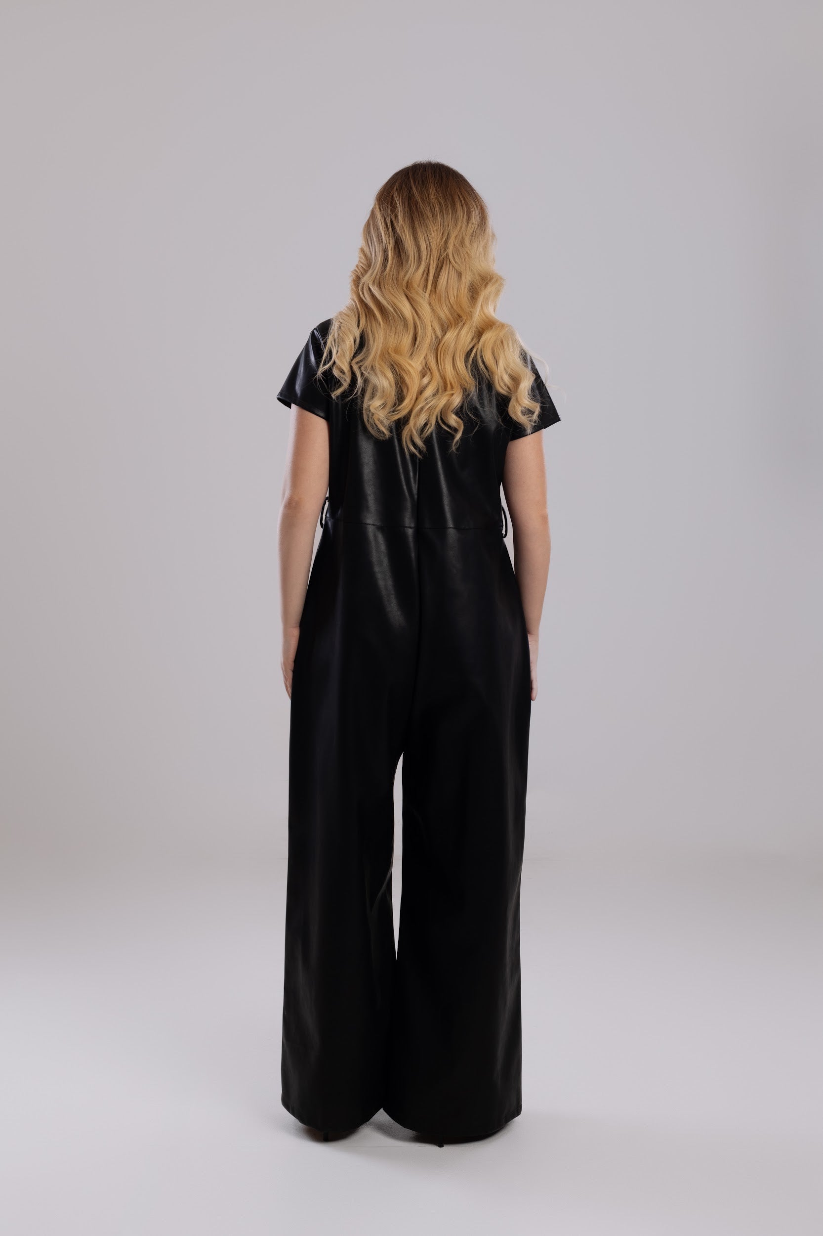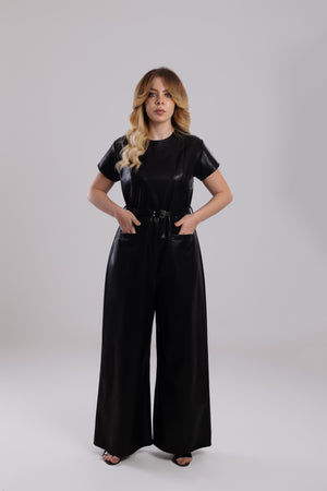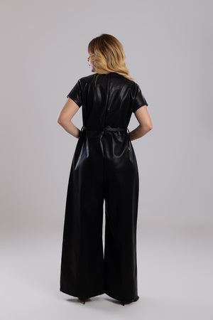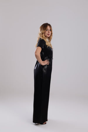 A striking one-piece crafted from supple, high-quality vegan leather. This statement piece delivers instant high-fashion impact with the ultimate ease of a single garment.